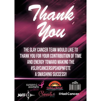 On behalf of the Slay Cancer Team, we would like to thank YOU for your contribution of time and energy toward making the #SlayCancerSipShopNFete a smashing success!! Humble thanks to our gracious sponsors and in-kind donors, those that…