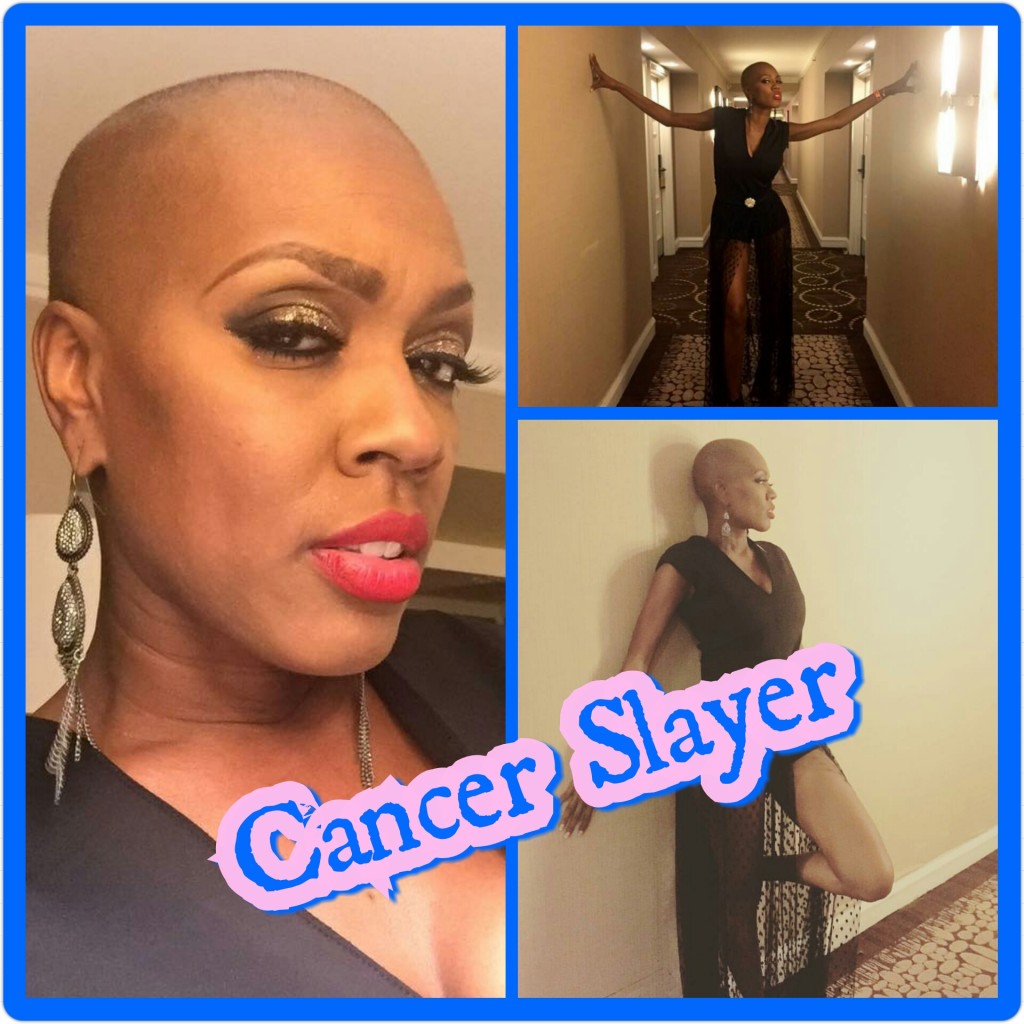 This past September 9th, the biggest and brightest Hollywood stars united on ‘Stand Up 2 Cancer ‘ (SU2C) a live fundraising telecast to benefit cancer research and help end cancer in our lifetime.The one-hour show will air live on more than 60 networks I was star struck by only one person and her name is Trina. When her beautiful brown face flashed across the screen, I was in awe. I was then totally enamored when I heard her story. You see, before this I had never even heard about colorectal cancer yet alone see a young black woman fighting the disease with style and grace. When she spoke about wearing makeup and heels to chemotherapy treatments, and modeling around the world WHILE undergoing chemo, that confirmed that we are most certainly from the same #SLAYCancer tribe. I found a way to contact this queen and she explained to me what #SLAYCancer means to her :