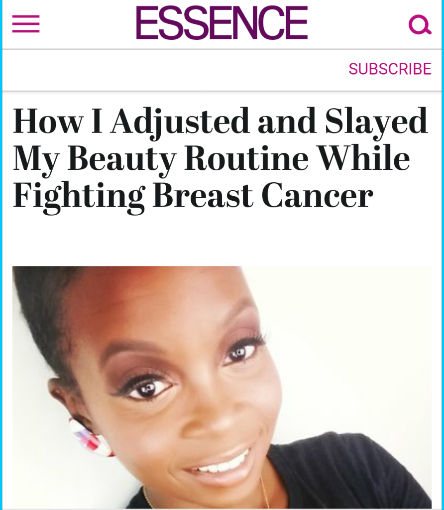 2016 has been a roller coaster of emotions….I went from planning my 33rd birthday dinner and spring vaca plans to getting diagnosed with breast cancer, going thru several months of chemo and undergoing a double mastectomy to being interviewed by Wendy Williams and now my #SLAYCancer beauty regimen journey is featured on essence.com….. YES!! THEE Essence.com. I am so grateful to God for healing me and presenting me with amazing opportunities to share my journey, bring breast cancer awareness to the forefront and most importantly bring glory to His name. Go the link below to read the article! I hope it open’s at least one person’s eyes to the effects of chemo on the body.