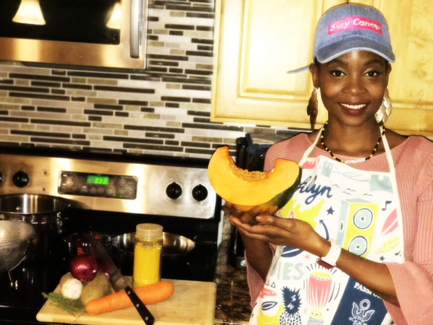 I’ll be using curry in this dish which gets its yellow color from the spice turmeric. This spice helps prevent several forms of cancer because of its anti-inflammatory and anitoxidant properties. (I have more information about cancer- fighting spices http://slayingcancer.com/hea lthyliving/i-still-ate-caribbe an-dishes-while-slaying-cancer -heres-why/). It’s safe to say a little curry goes a long way. It adds a unique and delicious undertone to traditional Thanksgiving foods- like pumpkin soup! Now get ready to taste the best cancer-fighting Caribbean inspired dish for the holiday season!