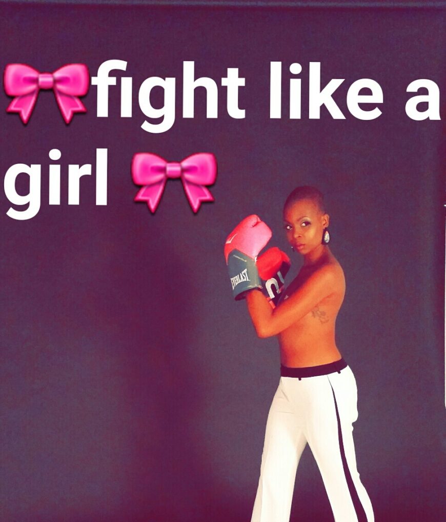 As soon as I arrived, this mood I was in began to change. Tricia’s excitement to shoot lil ole De, rubbbed off and gave me some energy. She expressed that all of her “Pink Pride” models gave her strength to know SHE can conquer anything that may come her way- and with a smile. She said she loved me for that. I felt good knowing this accomplished woman I’ve looked up to for over a decade saw beauty in me that was an inspiration to her. After hair (ha!) and makeup, I jumped on set, threw on those pink boxing gloves and began to fight thru the pain(physical, mental AND emotional). I was pleasantly surprised when 2 more of my Sorors (Christina and Linda) showed up and surprised me with love, support and a bottle of wine *wink* They cheered me on from the sidelines as Tricia worked her magic that made me feel sexy and confident…yes ladies and gentleman, D-Nice was back in action!!