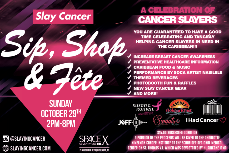 #SlayCancer presents: The Sip, Shop & Fete” event. THIS SUNDAY 10/29, head over to @space71_x for a Breast Cancer Awareness event with a Caribbean twist: